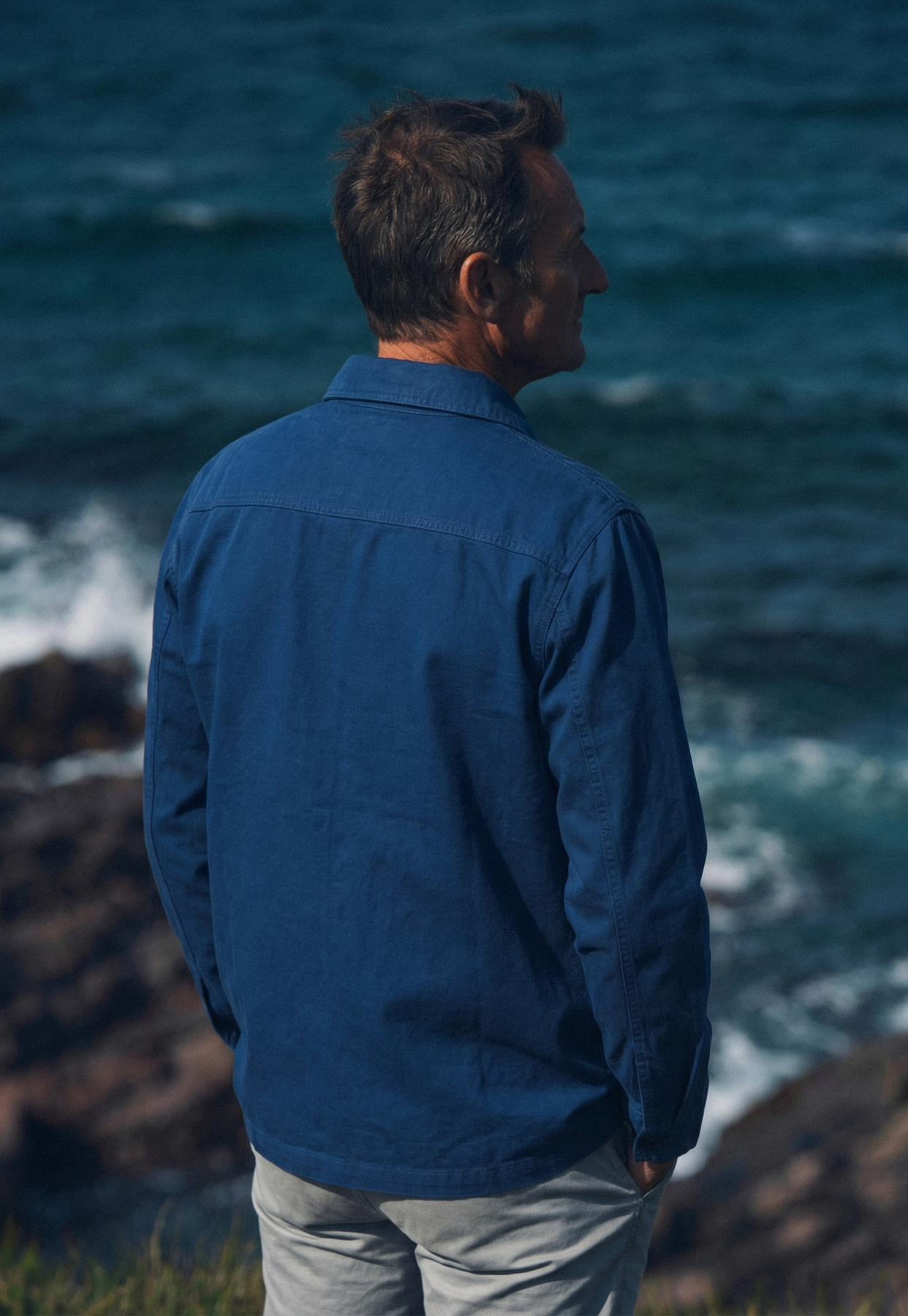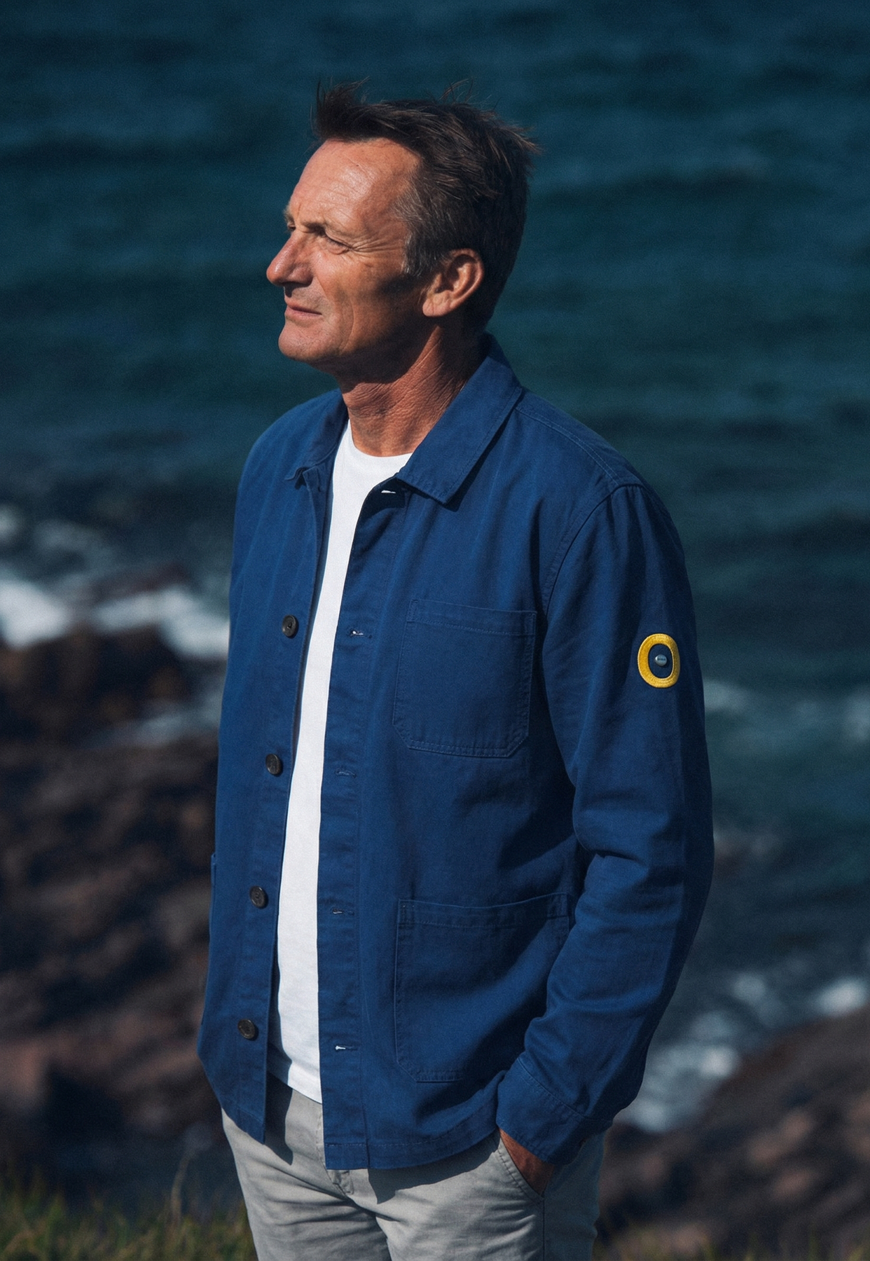 Inspirée des vestes de travail portées par les marins et ouvriers bretons de la fin du XIXᵉ siècle, elle transcende son origine fonctionnelle pour devenir une pièce maîtresse du vestiaire masculin contemporain. Confectionnée à la main sur la Côte d’Émeraude, elle incarne la vision du luxe côtier selon ecmo™.