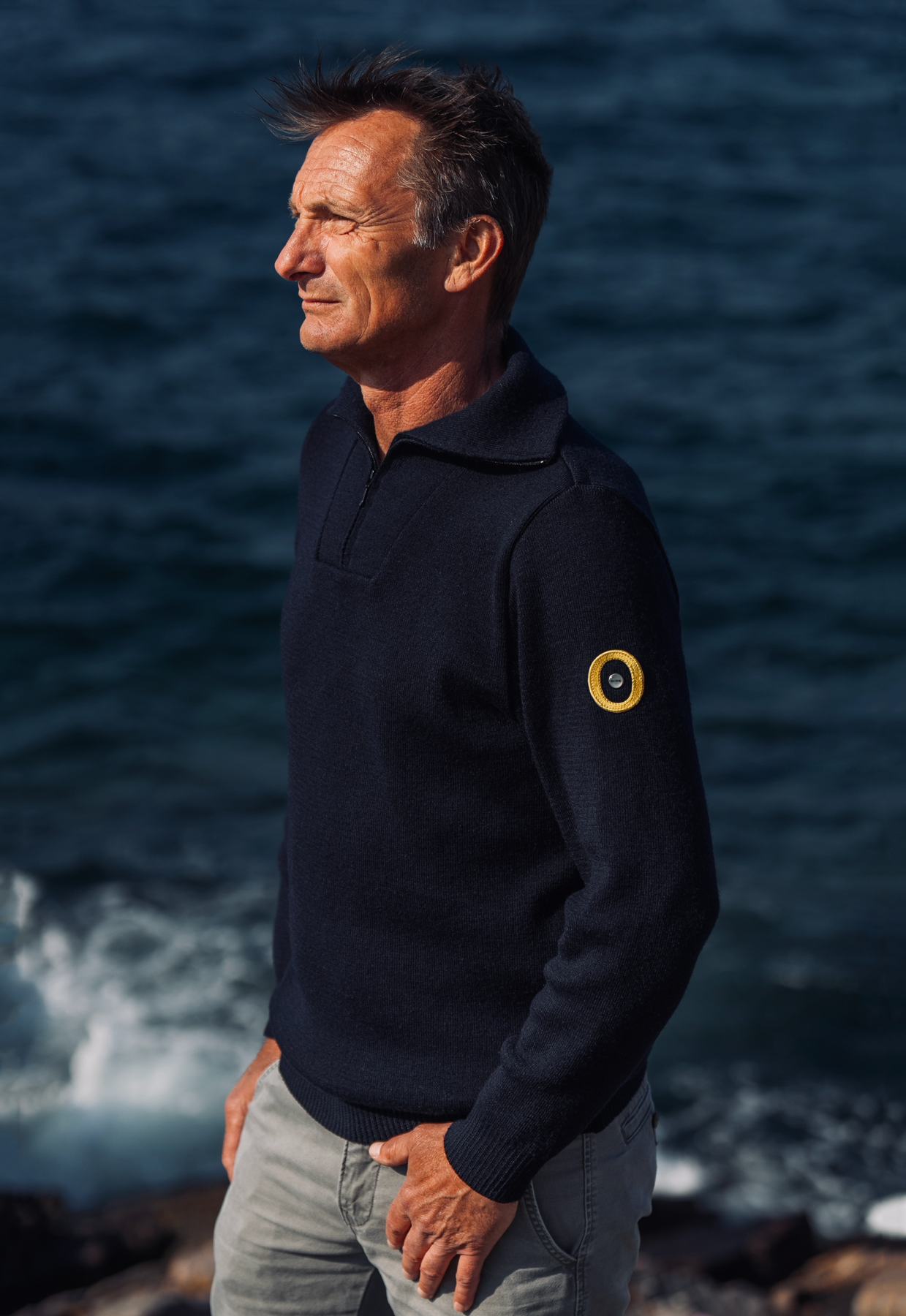 Drawing inspiration from traditional knitwear designed for work at sea, this exceptional sweater combines robustness with elegance to meet modern demands. Knitted and assembled by hand on the Emerald Coast, it embodies ecmo™’s vision of coastal luxury.
